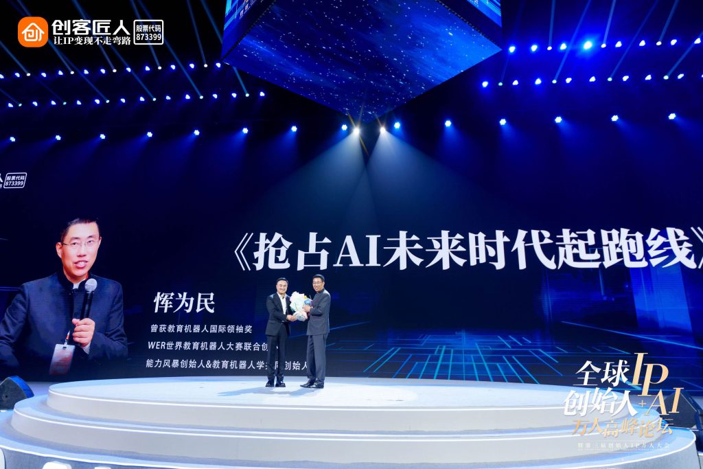 2025年11月22日,由创客匠人主办的“全球创始人IP+AI万人高峰论坛”在厦门海峡大剧院隆重启幕。本次论坛以“AI、IP、未来、共创、格局”为核心关键词,汇聚来自全国各地的10000余位创始人IP,共同探讨新商业时代的突破路径与增长机遇。能力风暴(Abilix)创始人恽为民博士受邀出席,发表题为《抢占AI未来时代起跑线》的主题演讲,引发全场对人工智能与未来教育融合路径的深度思考。